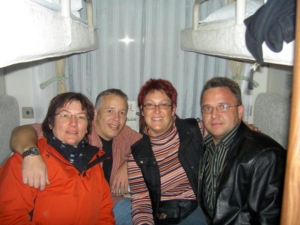 Mit dem ICE von Ulm nach Frankfurt/Main zum Flughafen war die erste Strecke geschafft. Nach 11 stündigem Flug war man müde aber voller Erwartungen in Peking angekommen. Keine Zeit zur Pause, raus aus dem Flughafen und sofort eine Stadtrundfahrt unternommen. Zur Mittagszeit hatte dann die Reisegruppe ihre volle Stärke von 28 Personen erreicht, da man sich mit 2 Mitgliedern die bereits eine Woche vorher angereist waren getroffen hatte. Tolle und erlebnisreiche Tage in Peking, mit Besuch der großen Mauer, hatten ihr Ende am Hauptbahnhof, von wo es mit dem Nachtzug nach Xiàn ging.