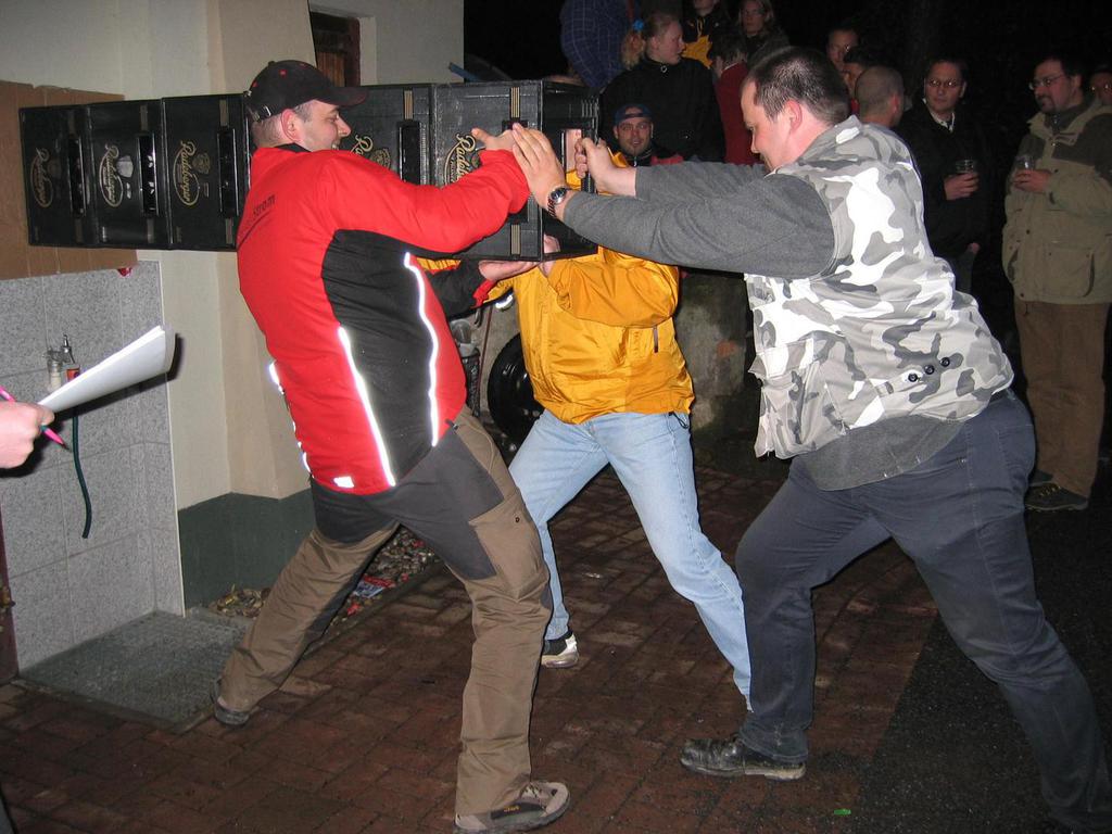 Viel Spaß hatten wir alle am Blinden-Fußball. Hier wurde Bewegungs-Legasthenie vom Feinsten geboten. In der letzten Disziplin lief dann unser Team zur Höchstform auf. Im Bierkisten-querstapeln konnte unsere Mannschaft, vertreten durch Michael, Mike und unserem Busfahrer Stefan, die meisten gegen die Hauswand stemmen und wurde mit 19 Kisten Dragolympischer Sieger. Damit hatten wir einen zufriedenstellenden 5. Gesamtplatz erreicht.