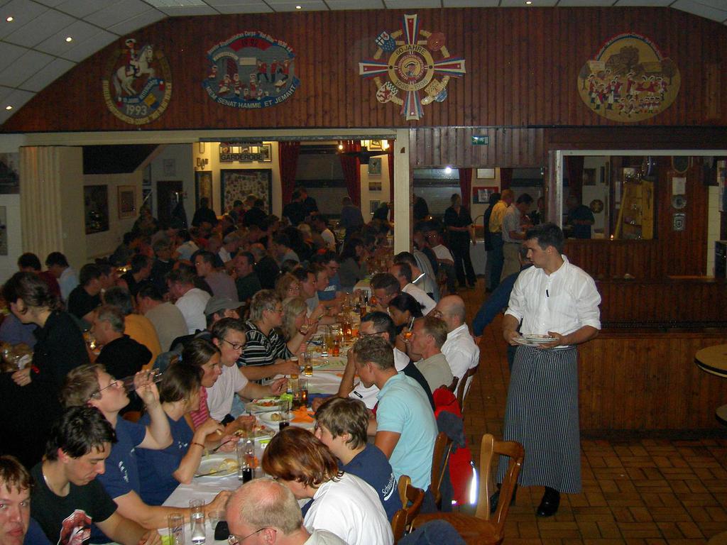 Klaus konnte bei unserer Teamvorstellung gleich noch ins Marketing-Horn stoßen und verteilte bei der Gelegenheit unter großem Hallo noch ein paar "Horschd" – den Maskottchen-Bären unseres Sponsors SchwabenStrom. Ein geselliger Abend mit Buffet ging schnell vorüber und so machten wir uns um 23.00 Uhr wieder auf den Weg zu unsererem Hotel. Viele nahmen die Gelegenheit wahr, um sich an der extra für uns geöffneten Kellerbar noch den ein oder anderen Absacker zu genehmigen. Nach kurzer Zeit hatten wir die Musikhoheit erlangt und es wurde noch eine wilde Nacht mit Tanz bis in den frühen Morgen. Hoffentlich war dies keine Schwächung für den morgigen Wettkampf.