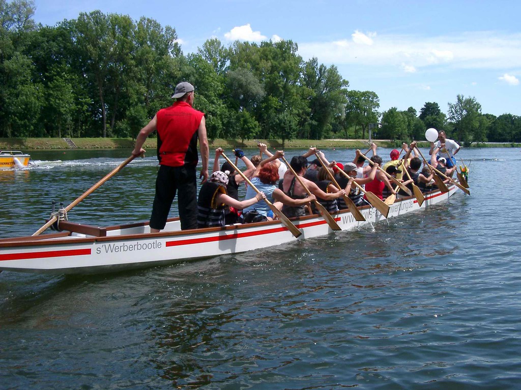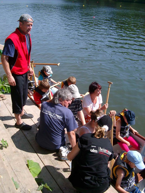 Im Rahmen der Heimattage Baden-Württemberg und des 2. SWU Hochschulcup hatte jeder die Möglichkeit am Sonntag den 22. Juni 2008 selbst ein Stechpaddel in die Hand zu nehmen und im Drachenboot zu fahren. Schnell wurde unseren Probefahrern klar: "Es ist nicht so einfach, wie es aussieht." Vor allem die kleineren Passagiere hatten größten Spaß, wenn wieder einer das Paddel schräg aus dem Wasser zog und sich ein Spritzer Wasser ins Boot verirrte.