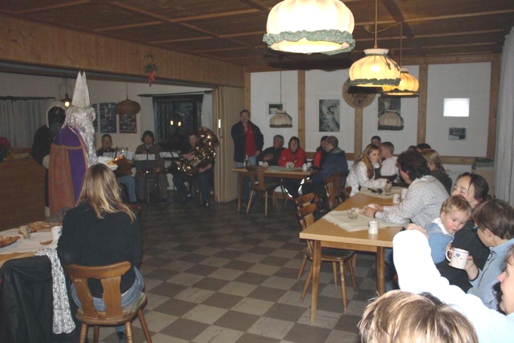 Kurzerhand wurde die Feier nach drinnen verlegt. Bei stimmungsvoller Musik, Schmalzbrot und Glühwein -für die Kleinen natürlich Kinderpunsch- ließ es sich gemütlich beisammen sitzen.