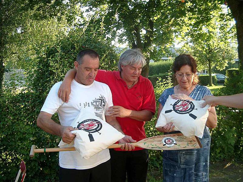 Mit einem lachenden und einem weinenden Auge haben sich am 20. August Zora & Stibbe in ihren wohlverdienten Ruhestand verabschiedet. 4 Jahre lang haben sie uns vor und nach den Trainings und bei so manchem Festle hervorragend bewirtet (erinnert sei an Zora's leckere Salatteller und Stibbes einmalige Ćevapčići). Wir wünschen den beiden, dass sie noch lange gesund bleiben, ihren Ruhestand genießen können und ab und an den Weg nach Ulm finden!