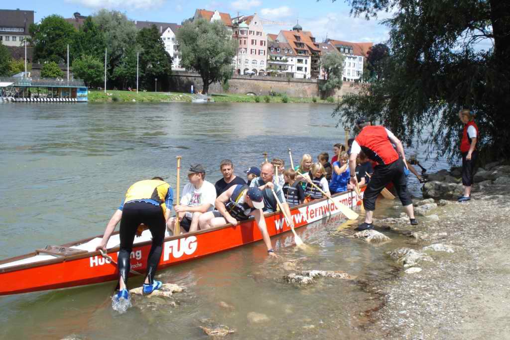 Das alles brauchte man dann auch auf dem Rückweg, denn die Donau hatte ziemlich Strömung, und mitunter gab es kräftigen Gegenwind. Die jungen Turner mussten kräftig "am Paddel reißen", aber das alles war letztendlich kein Problem.