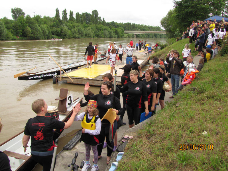 Nun galt es den ersten Platz vom letzten Jahr gegen die Teufelsweiber, die Römer Dragon Ladys und die Paddelhexen zu verteidigen. Und wären wir 0,34 Sekunden schneller gewesen, hätten wir das auch geschafft. So aber freuten wir uns über einen hart erkämpften zweiten Platz. Danke auch an unsere Lieblingstrommlerin Lilly, die ihren Trommeleinstand spitzenmäßig gemeistert hat!