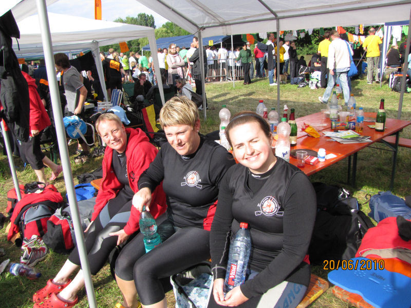 Das Wetter wurde von Stunde zu Stunde besser, was der guten Laune und der sportlichen Leistung unserer Mädels nur zuträglich war. Nachdem wir beim Vorlauf durch einen verhagelten Start noch nicht ganz zufrieden mit uns waren, konnten wir das im Halbfinale mehr als wettmachen. Mit einer Bootslänge Vorsprung paddelten wir ins Finale.