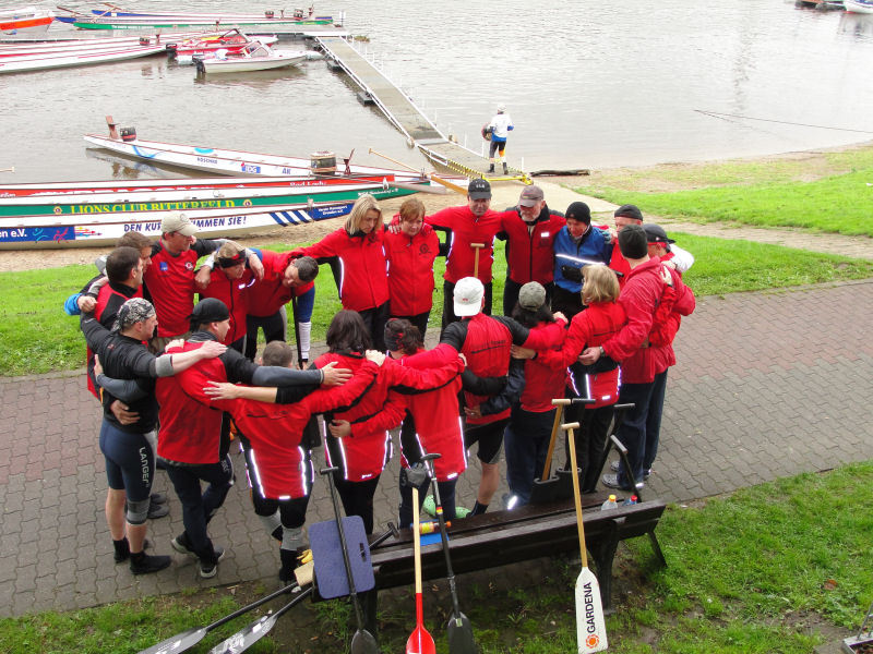 Dieses verlängerte Wochenende hatte einfach wieder alles: Staus auf den Autobahnen, abartige Kälte und Regenschauer, eine Nachschulung in den Regeln der Wasserstraßenverkehrsordnung (gelbe Bojen sind Bäh!) mit einem Verwarnungsgeld von 35€, einen eigenen Physiotherapeuten, (Hier nochmals Dank an Volker vom Team aus Witten für die Massagen und die Stimulation – und natürlich auch fürs Freibier!). Dank auch an Tom, den Teamkapitän aus Witten, der wie jedes Jahr an jedem Abend mit unseren Frauen in geselliger Runde seine Schwäbisch-Kenntnisse vertiefen konnte und uns zu einem neuen Schlachtruf verhalf. Mitunter wurde man auch beim Singen und den Schlachtrufen immer textsicherer. Nicht zuletzt wieder einen ganz großen Dank an Jens und seinem Organisations-Team von den Dresden Bulls, die durch Ihre Ideen und der Durchführung dieser Veranstaltung, den Dresdner Schlössercup so einzigartig machen. Und da wir trotz der Kälte wieder einen Riesen-Spaß hatten, freut sich das Team schon auf den kommenden Schlössercup im nächsten Jahr.
