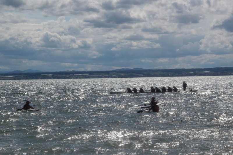 Der Tag war warm und freundlich, aber der Wind war heftig. Die Wellen schlugen teilweise schulterhoch in die Boote. Zwei oder drei Paddler waren ständig mit Schöpfen beschäftigt. Wenn das Wasser mal