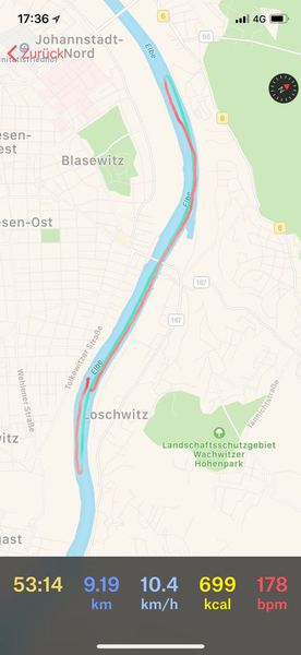 Die ersten fünf Kilometer der Strecke ging es die Elbe abwärts und wir konnten einige Plätze gutmachen. Nach der Wende gab es eine kleine Rangelei, die Plätze und auch Kraft kostete, sodass wir
