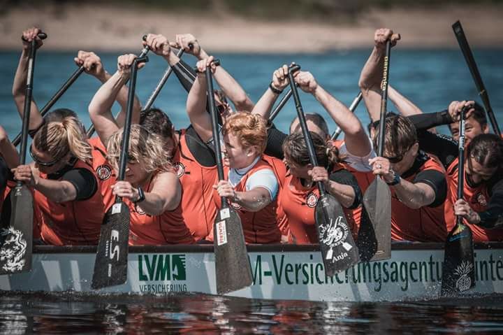 Bei herrlichem Sonnenschein konnten am Samstagnachmittag die dragolympischen Spiele beginnen. Diese bestanden aus den Disziplinen Paddelweitwurf, Tauziehen, Becherslalom und Kisten waagerecht stapeln. Die Ergebnisse aller Disziplinen wurden in einer Teamwertung zusammengezählt, die wir von hinten anführten.