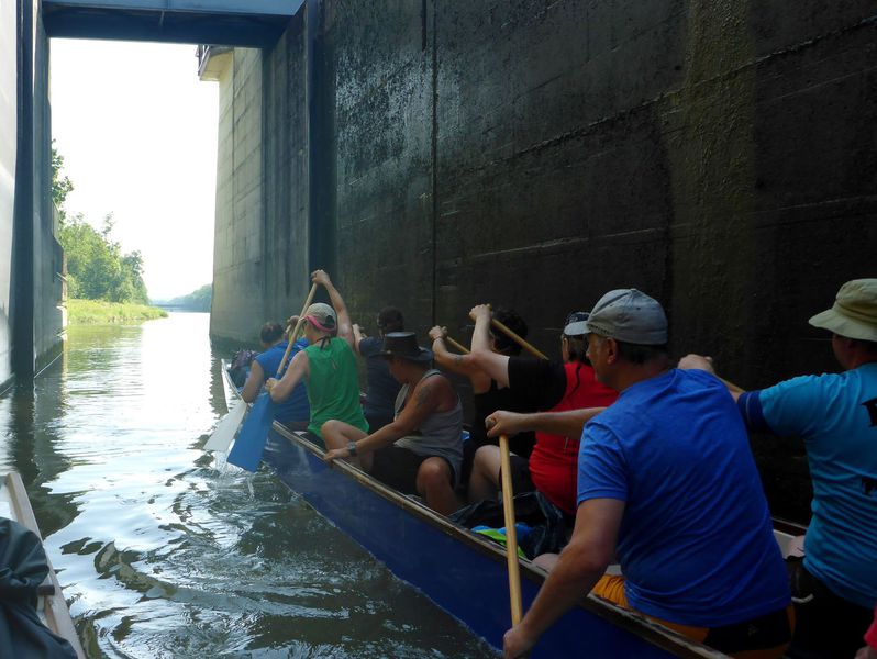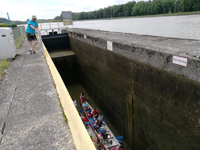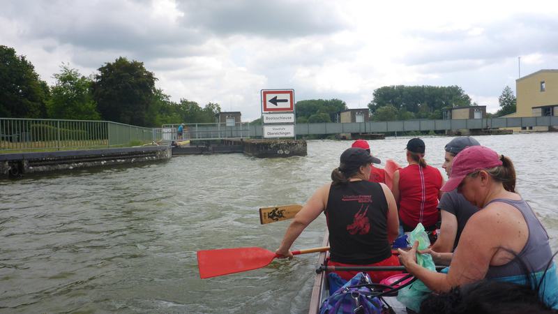 Die Drachenboot Wanderfahrer hatten Samstagfrüh um neun abgelegt, und gerademal eine halbe Stunde später war klar, dass die Böfinger Schleuse eben nicht offen ist.