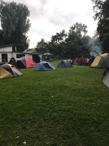 In Günzburg war man Gast auf dem Gelände des VfL Boots-Kanuklubs. Die Ausrüstung fürs Zelten war schon da (tadellose Landlogistik!), und so klang der Abend gemütlich aus.