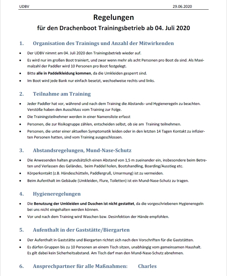 Für das Training hat der Verein ein Schutz- und Hygienekonzept erstellt, um die Ansteckungsgefahr für die Paddler beim Training auszuschließen.
